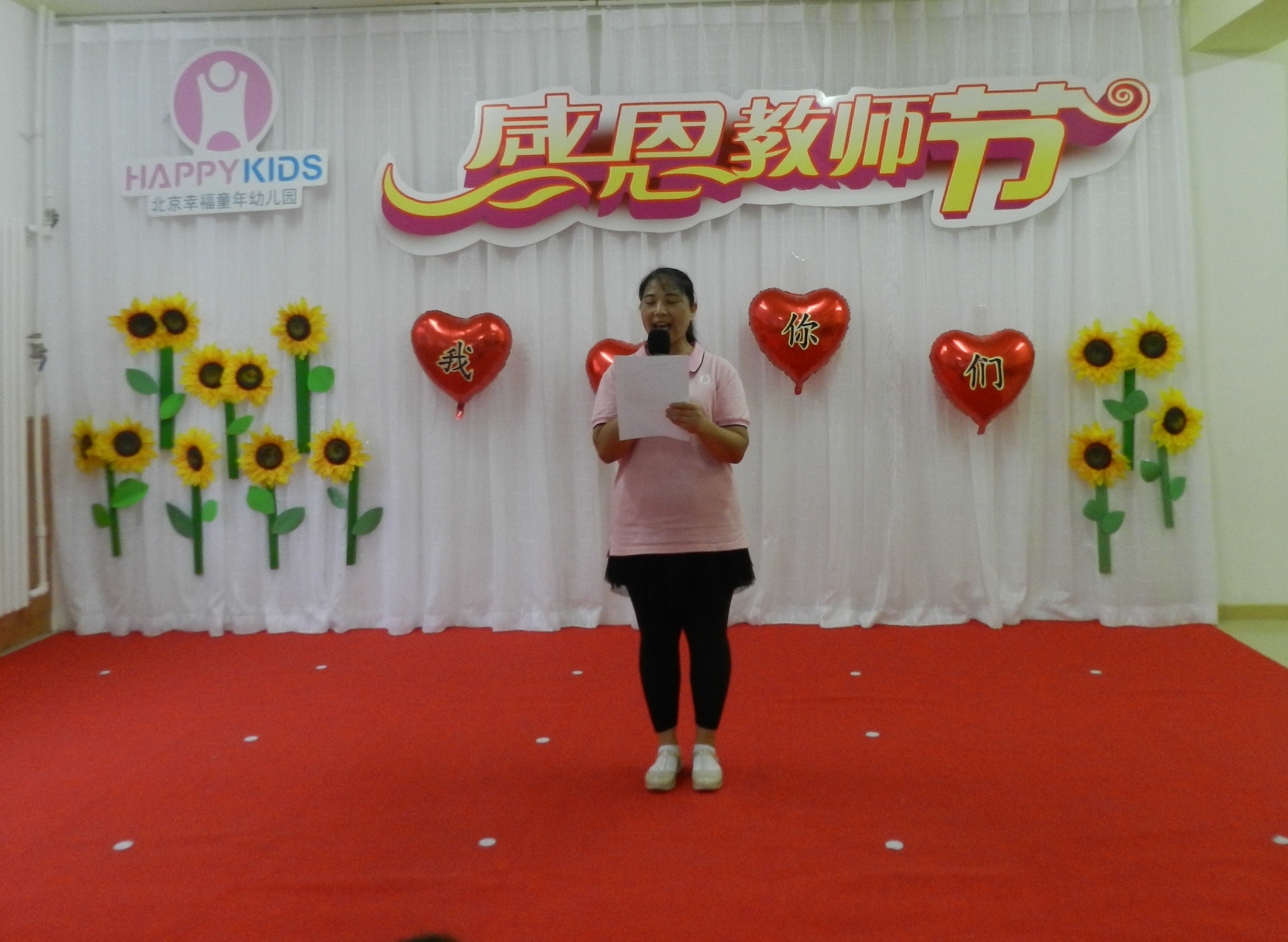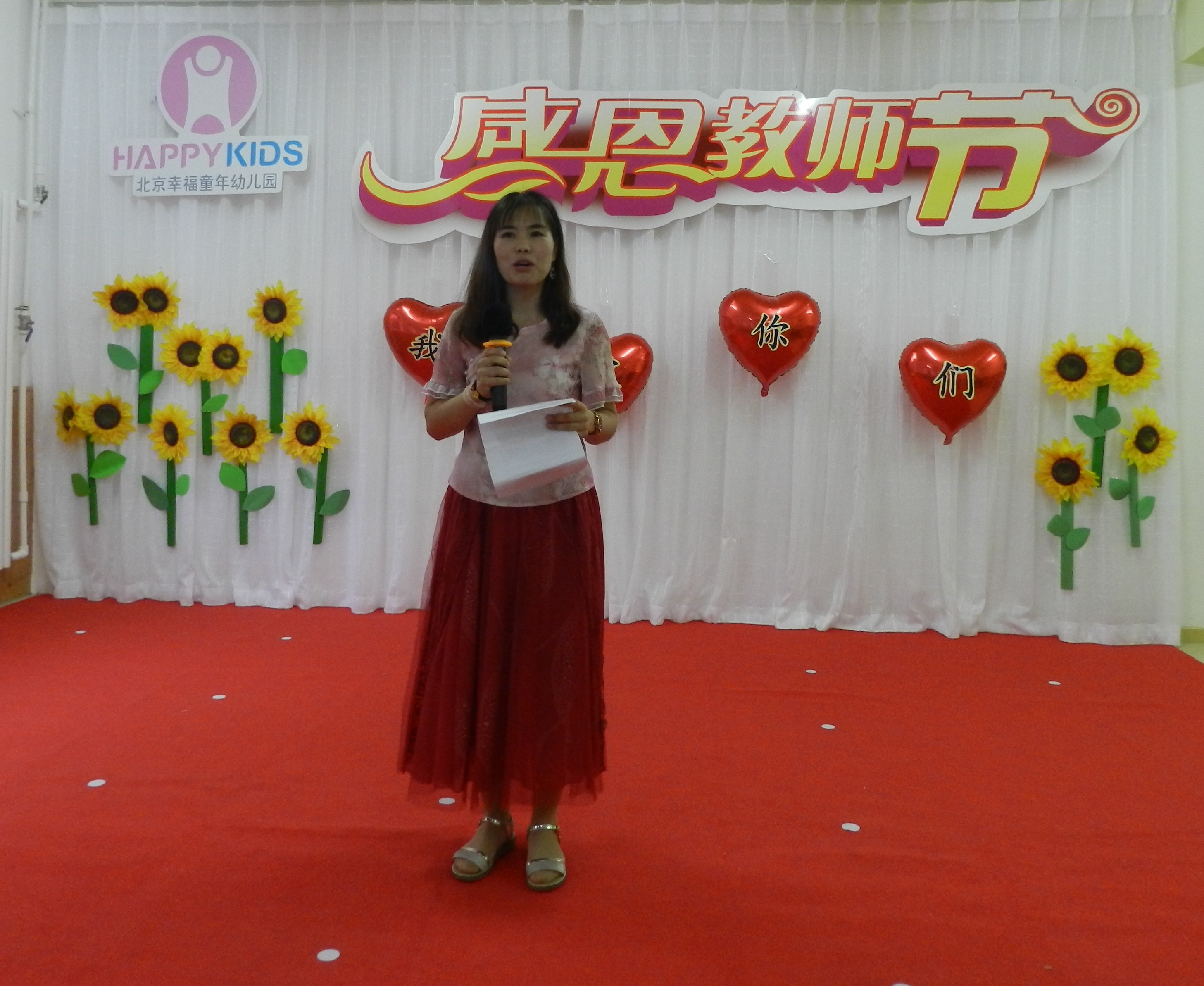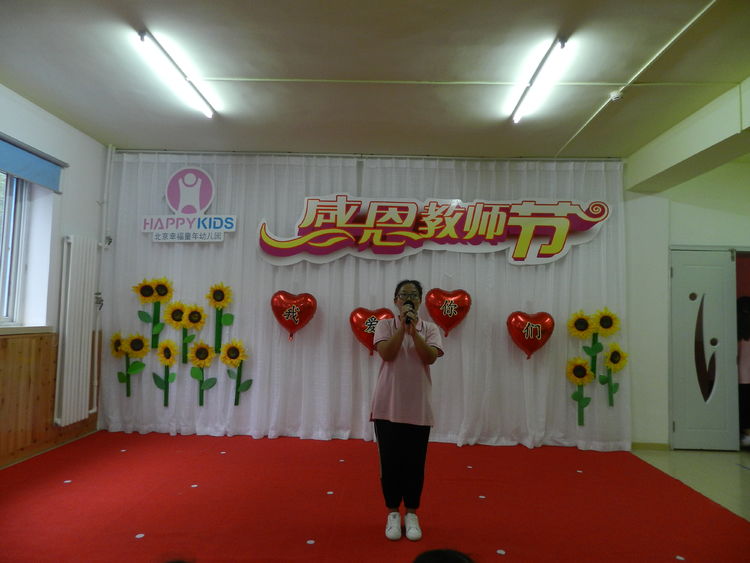 下午五点整,主持人菲菲老师和康园微老师闪亮登场,宣布幸福童年第七幼儿园庆祝教师节大会正式开始。