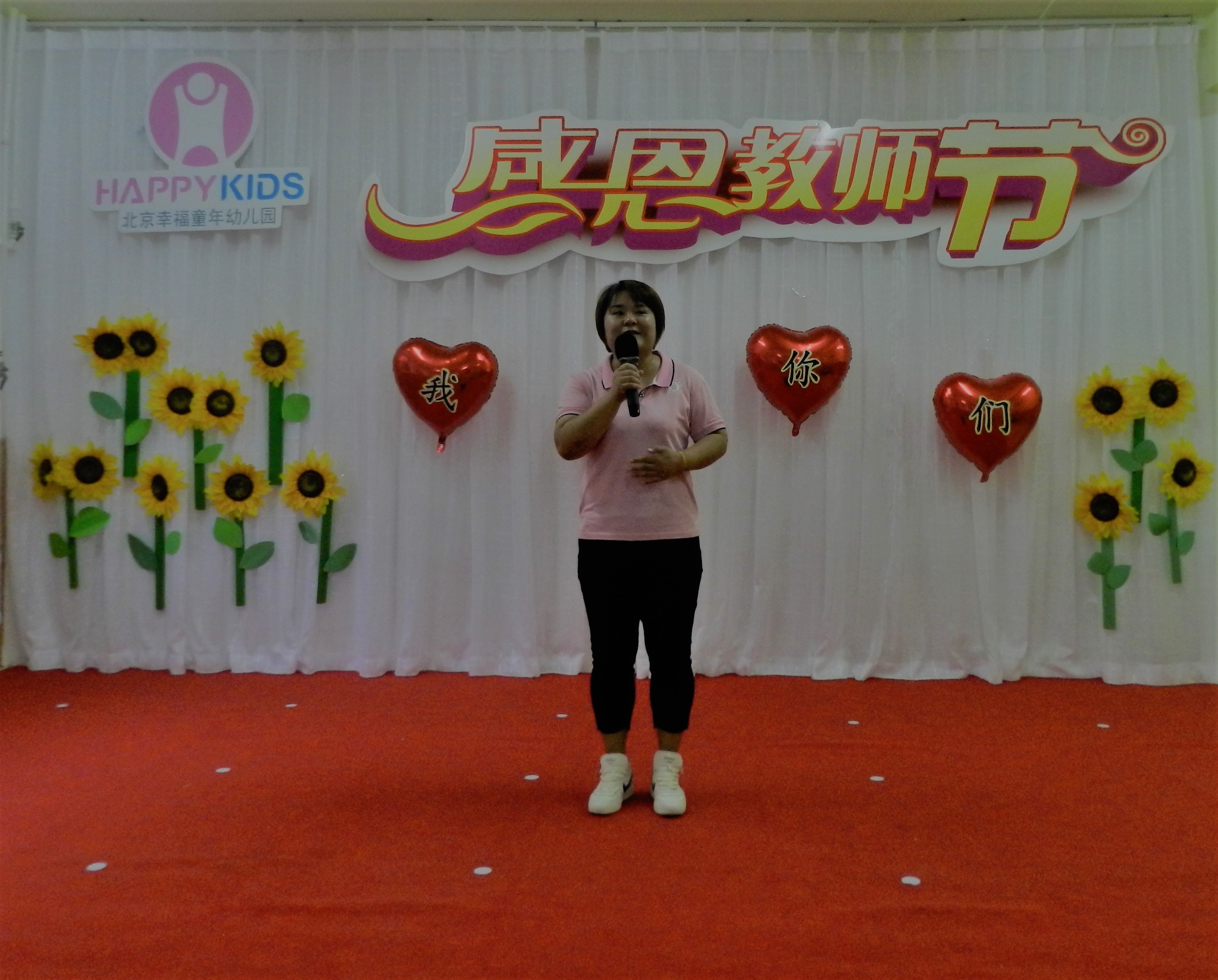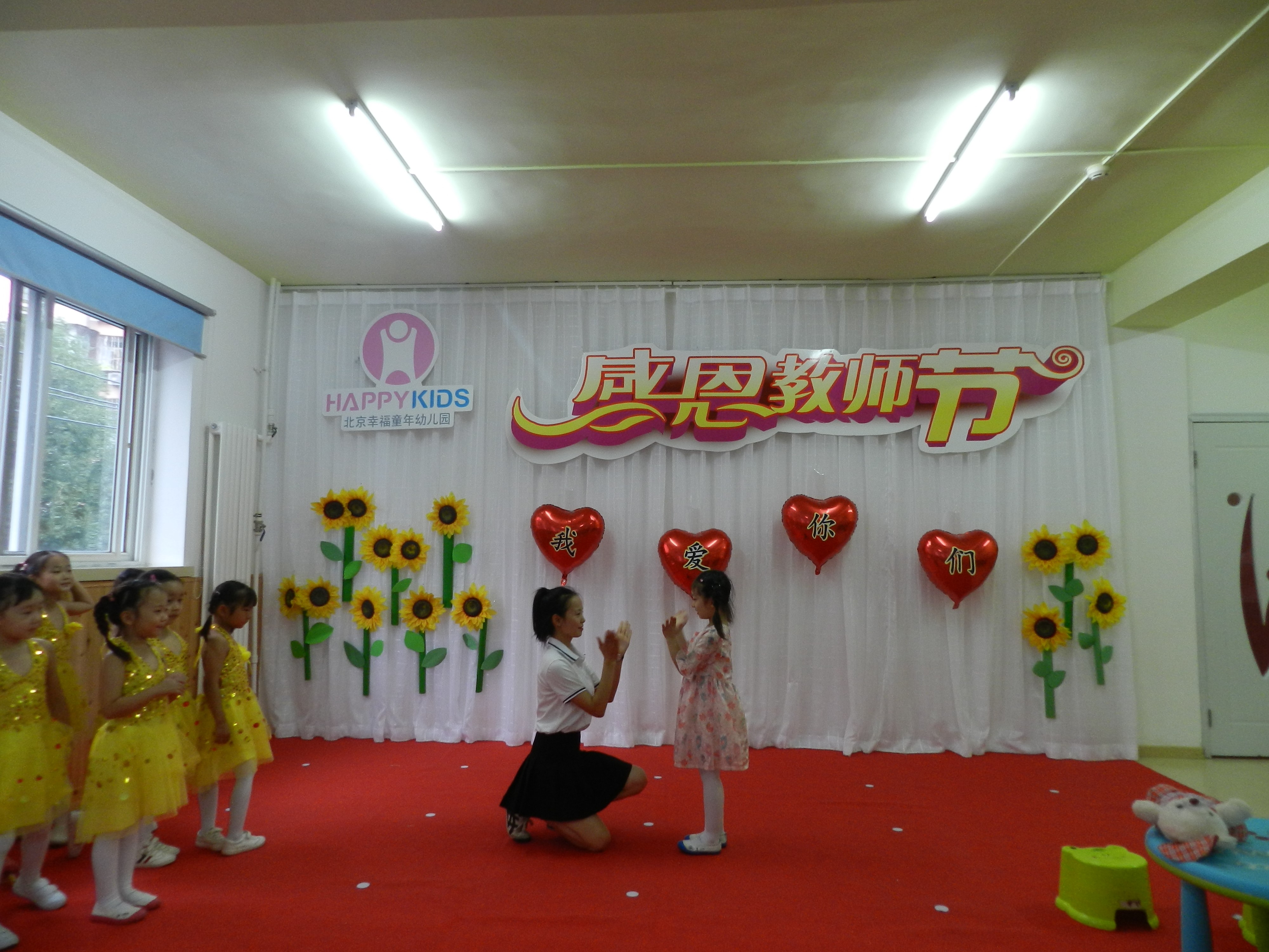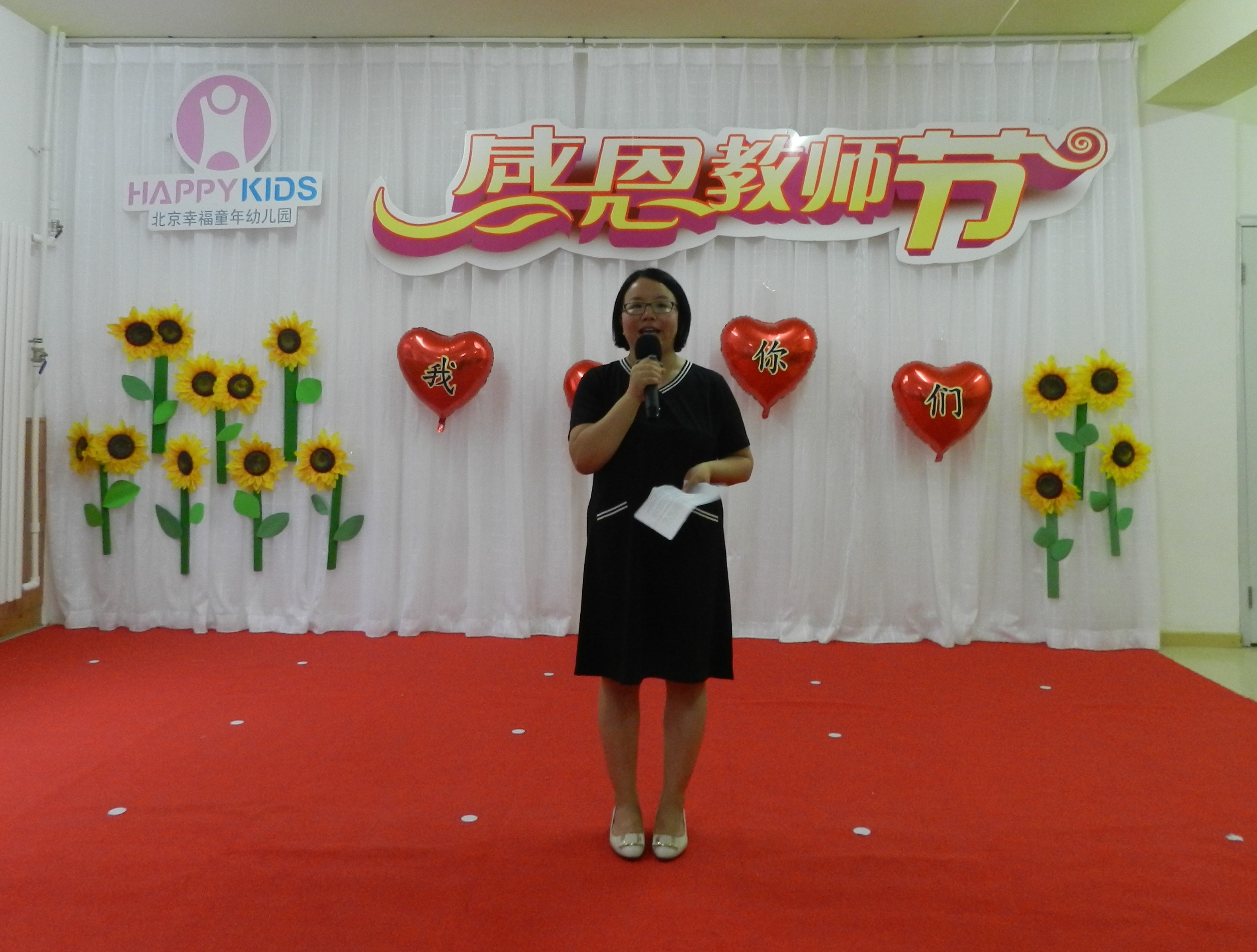 下午五点整,主持人菲菲老师和康园微老师闪亮登场,宣布幸福童年第七幼儿园庆祝教师节大会正式开始。