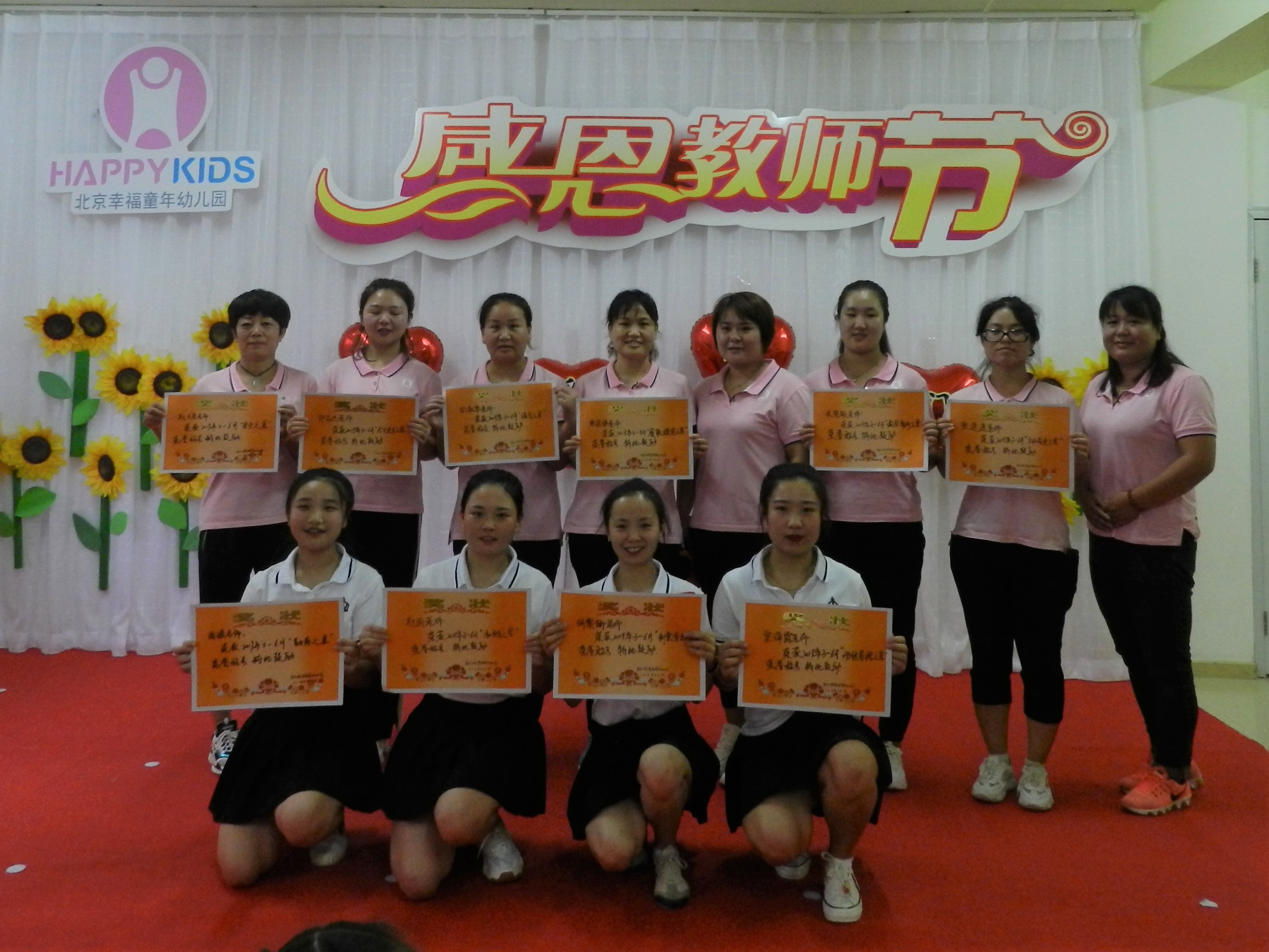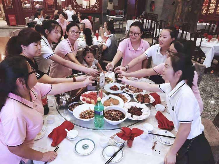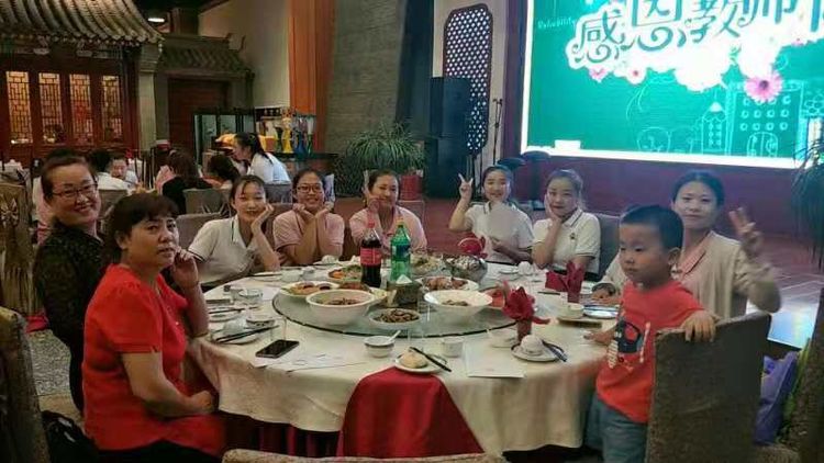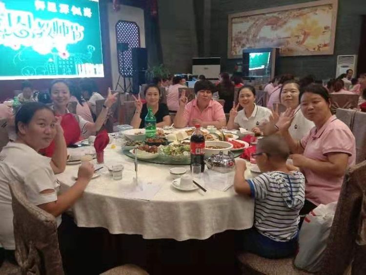幸福童年七幼全体教职工合影 活动结束后,集团领导及幼儿园还为幸福童年七幼全体教职员工安排了一场教师节聚餐party。让我们与爱同行,温情相伴,时刻铭记教师的神圣使命,做天底下最可爱的人。
