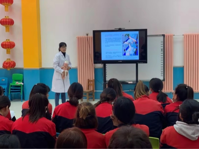 2018年10月10日,幸福童年幼儿园保健医对教师们进行了常见急救知识的培训。