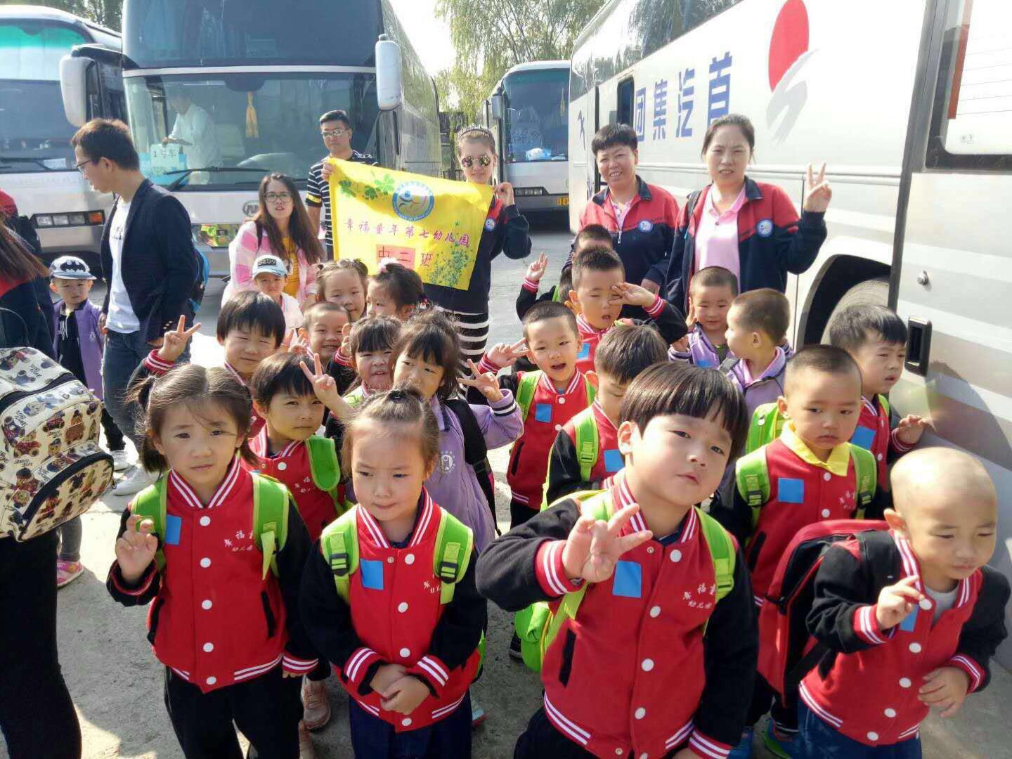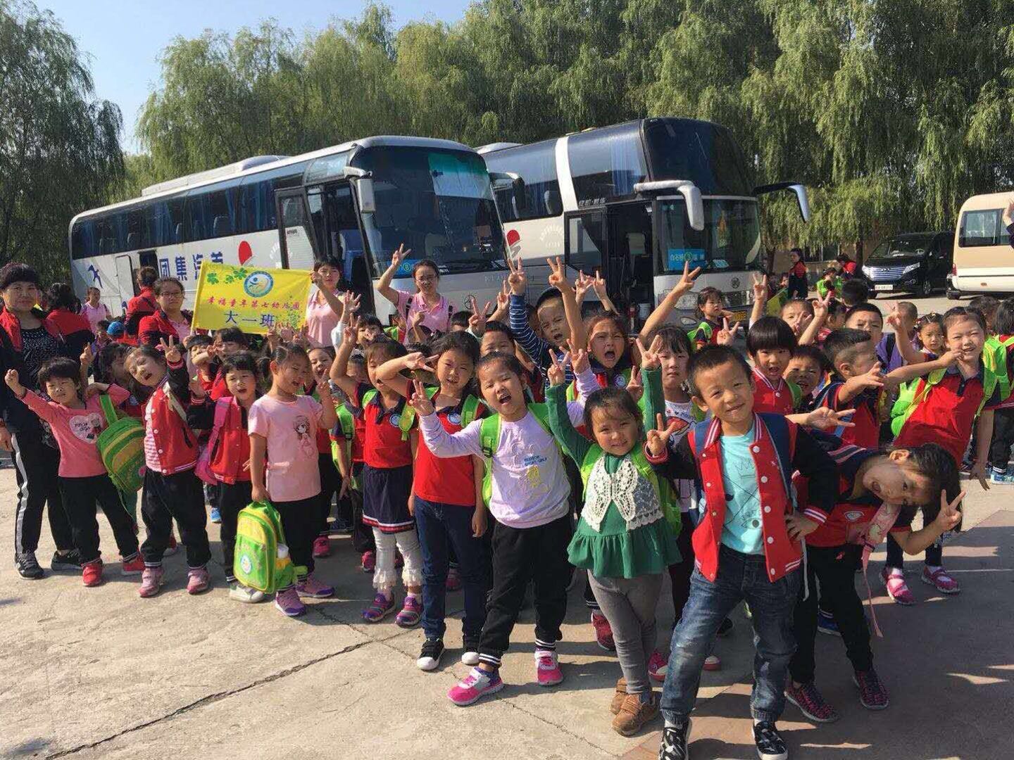 当天早上,孩子们早早地来到了幼儿园,个个精神抖擞,吃完早饭,在老师的带领下,排着整齐的队伍,高高兴兴地唱着儿歌出发了。