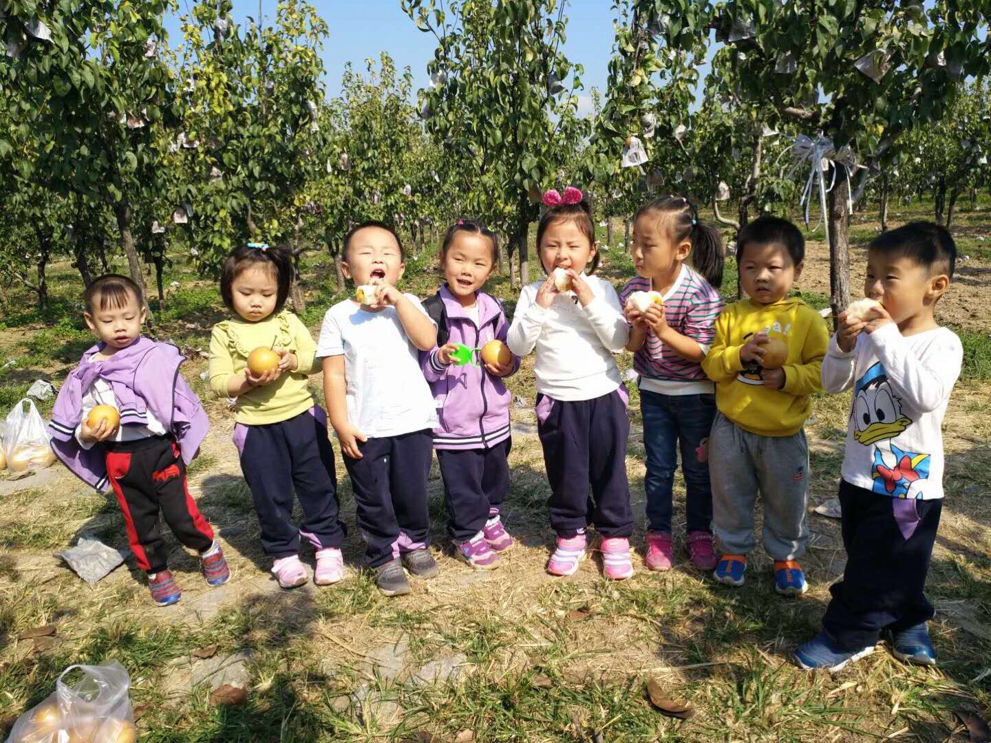 秋天是个美丽的季节,也是一个丰收的季节。在这个充满丰收喜悦的节气,秋高气爽,正是采摘的好时节。2018年9月26日,北京幸福童年第七幼儿园组织中大班幼儿和小班亲子一起前往昌平百果采摘园,进行了一次愉快的摘梨秋游活动。