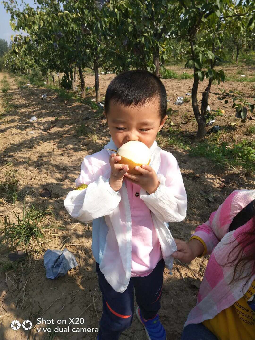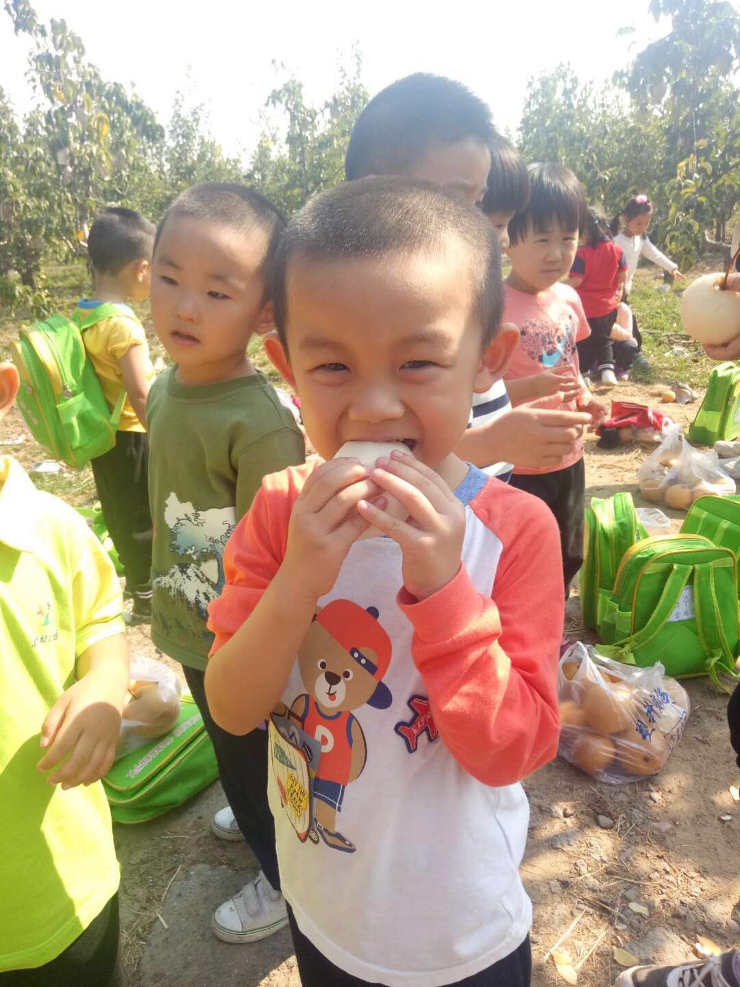 畅快采摘后,孩子们麻利地打包整理好胜利果实,便迫不急待地开始了“甜梨大餐”,满足感溢于言表。