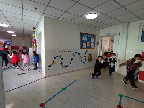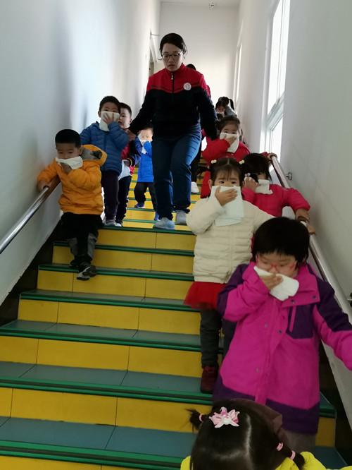 紧接着幼儿园进行了消防演习活动,上午响起了紧急火灾报警声。只见小朋友们在老师的指导下,小、中、大班小朋友双手捂着口鼻快速有序地从楼梯上快速有序地逃生,在老师的带领下安全的疏散到空旷的操场上。达到就近安全场地后,老师及时确认人数。整个演练过程做到快速、安全、有序。